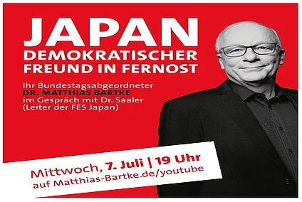Event News Discussion ”Japan and Germany—Democratic Partners” Matthias Bartke, a member of the German Bundestag, and Sven Saaler discuss recent developments in Japanese politics, Japanese-German relations, and Germany‘s foreign policy in the Asia-Pacific region.