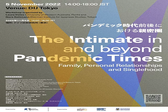 コロナ禍と日本の独身者:ソーシャルディスタンスと自粛の時代における人間関係と親密性の実践 05.11.2022 「3密」を避けるための緊急事態宣言は、独身者をはじめ多くの市民生活に大きな影響を及ぼしています。このワークショップでは、コロナパンデミックとそれを食い止めるための政府施策が独身者に与える影響に焦点を当てて考察します。 今や全世界的な現象となったコロナパンデミックは、私たちの生活様式を一変させました。この大きな変化が、人々の私生活、特に人間関係にどのような影響を与えているのか、具体的に見ていく必要があります。ロックダウンや社会的距離は、日々の行動、親密さの捉え方、人々との距離の保ち方、コミュニティとの関係性にどのように影響しているのでしょうか。これらの問いについて、25歳から49歳の独身者を対象に議論を深めます。 日付: 2022年11月5日(土) 時間: 14:00-18:00 (JST) 言語: 英語及び日本語 開催場所: ドイツ日本研究所(DIJ)東京 主催:ドイツ日本研究所(DIJ)、フリードリヒ・エーベルト財団(FES)、ドイツ 科学・イノベーション フォーラム 東京(DWIH)、ウェスタンオーストラリア大学 Webseite: Deutsches Institut für Japanstudien (DIJ) Tokyo
