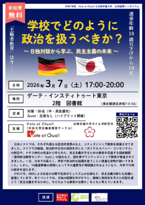 Japan and Germany have developed distinct approaches to citizenship education within their respective historical contexts. In Germany, postwar efforts included establishing the " Beutelsbacher Consensus," which affirmed the principle of political neutrality, and creating the Federal Agency for Civic Education (bpb). The bpb is a national institution that promotes education to safeguard democracy and was born from reflections on the Nazi era. These initiatives advanced citizenship education nationwide. In Japan, however, schools have long been cautious about addressing political topics. The introduction of voting rights for 18-year-olds, however, led to a renewed recognition of the importance of citizenship education in schools, and the discussions have now been going on for ten years.